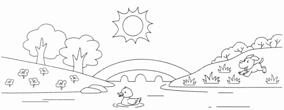 1. Mike 画了一幅公园写生画,根据描述给写生作品涂色。