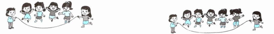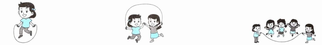 1. 每组参与跳绳游戏的小朋友分别有几个? 观察图片,选一选,读一读。