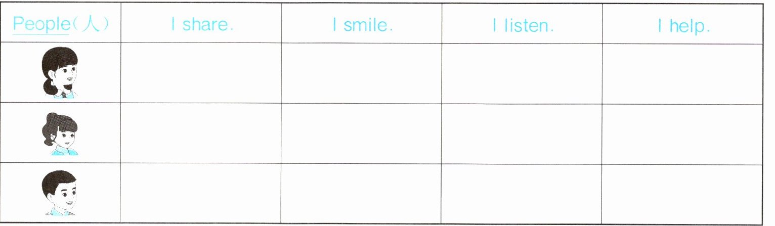 三 听录音,完成表格。勾选出对应人物的交友行为。