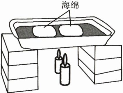 (广东汕头期末)某同学利用铝盆、海绵、蜡烛、水等材料设计了一个模拟地球板块运动的实验(如下图)。实验中发现蜡烛加热区的水流上升,两块海绵分别向左右两侧运动,据此回答13~14题。