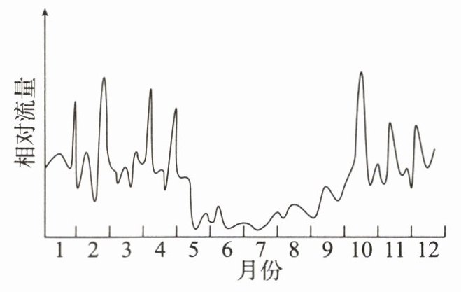 2. 读北半球某河流年径流量变化图(此河以大气降水补给为主),该河流所在地区的气候类型可能是