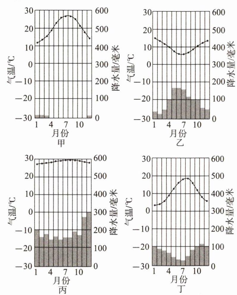 1. 关于甲、乙、丙、丁四地对应的气候表述正确的是