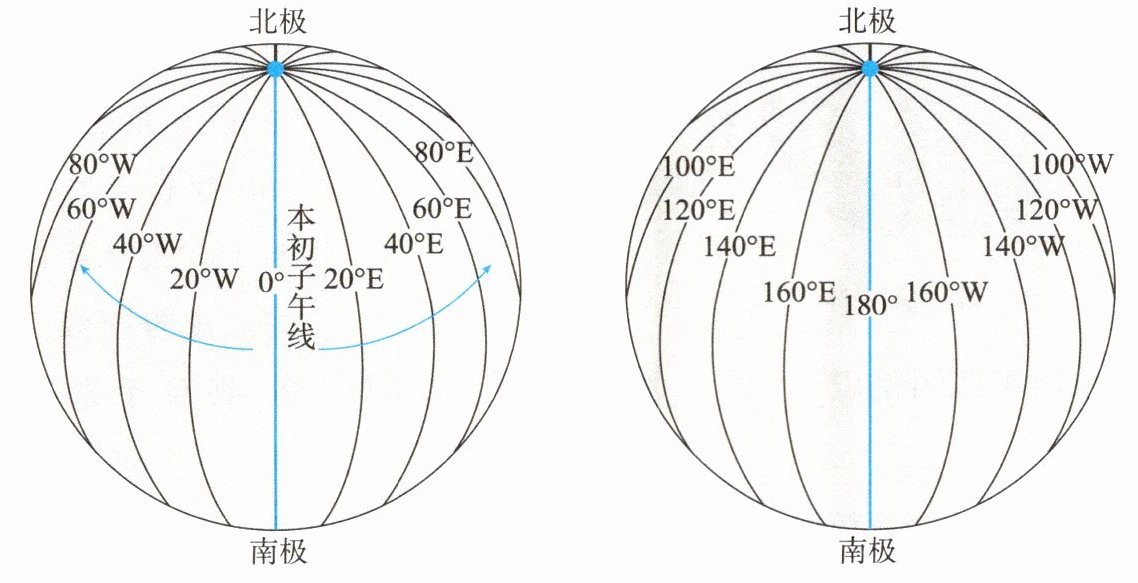 ,是经度的起始线。(2)由本初子午线向东和向西,各分