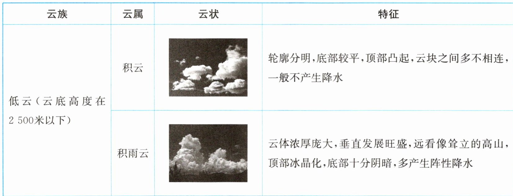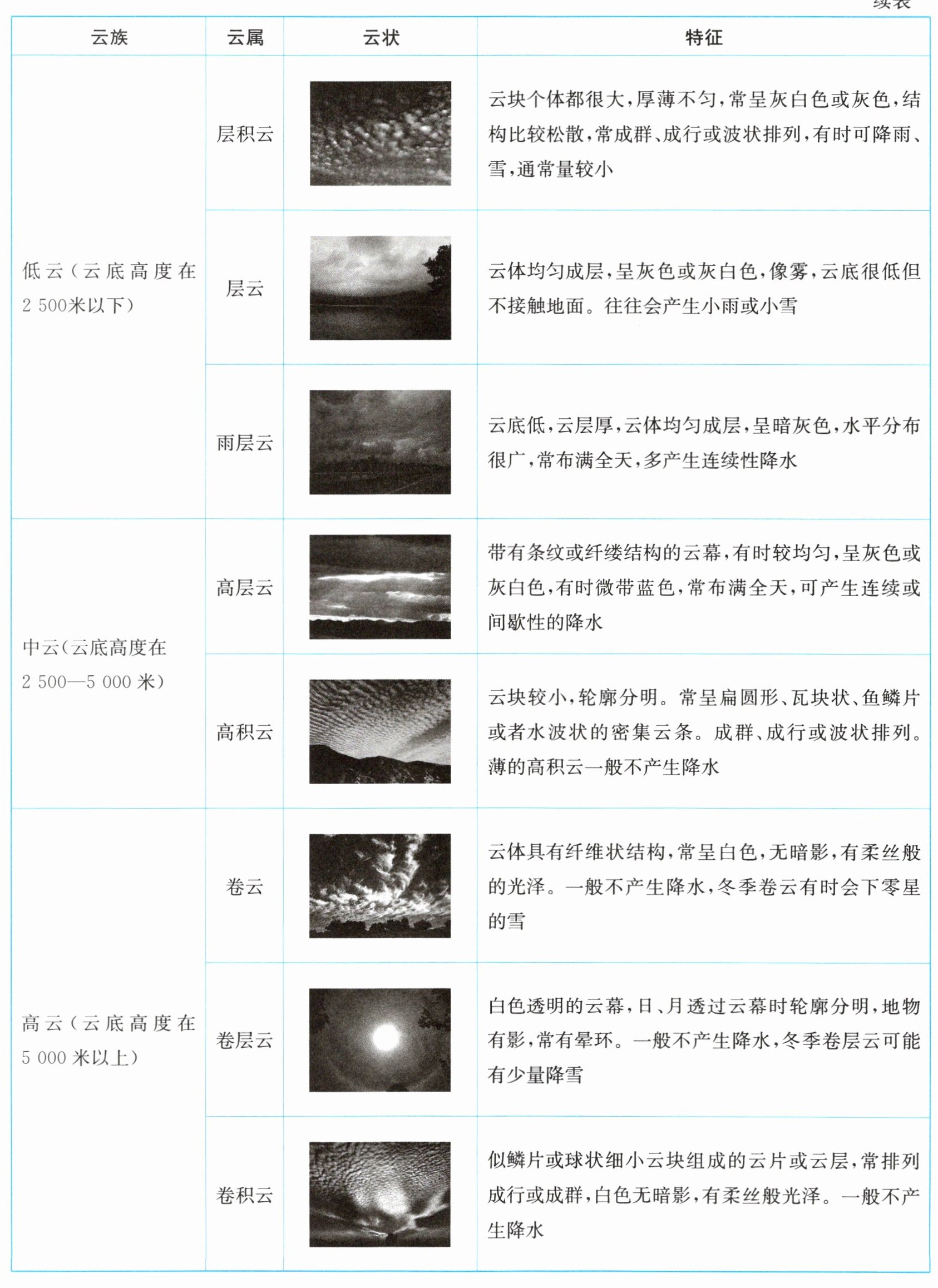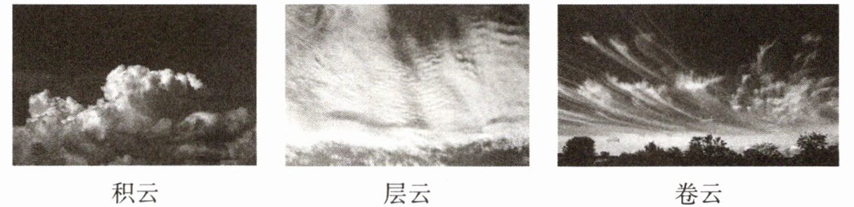 从形态上看,云主要有积云、层云和卷云;从所处的高度来看,云又分为高云、中云和低云。