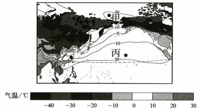 7. 根据甲、乙、丙三地的气温差异推测,该图应为 (