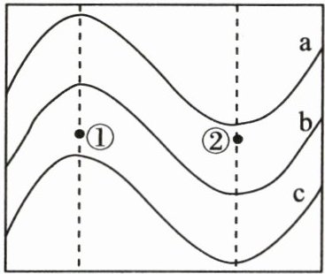 8. 如图,北半球中纬度陆地上某区域的年等降水量线数值关系为a < b < c。读图,下列说法中正确的是 (
