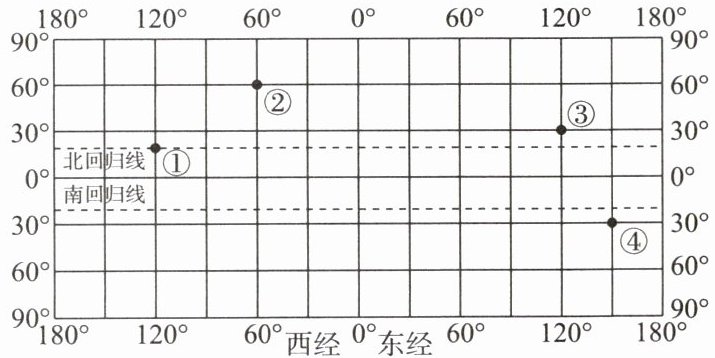 3. 与图中③点所在经线能组成一个经线圈的经线是(