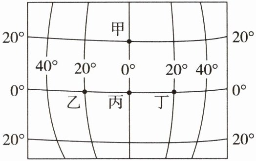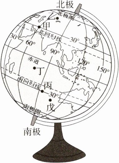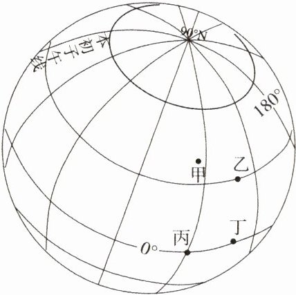 5. 图中甲、乙、丙、丁四地所在的纬线最长的是(