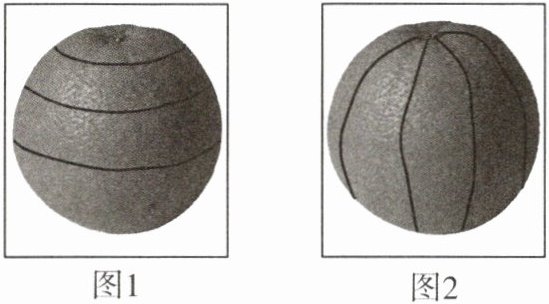 (1)A同学在橘子上用彩笔所绘制的线(如图1所示)是