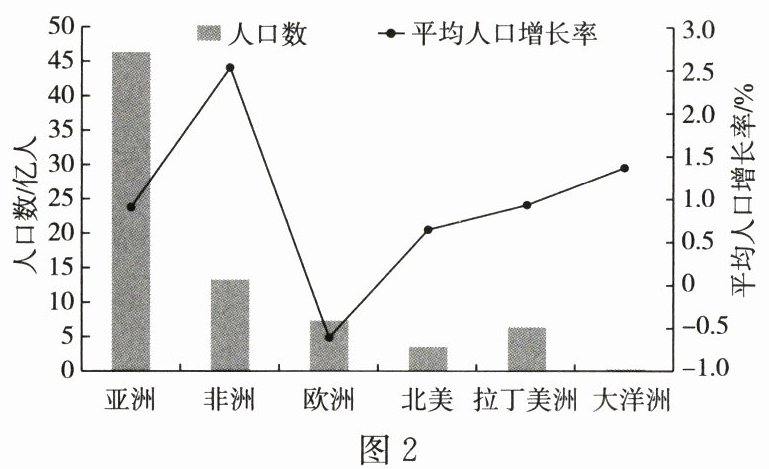 (3)图2所示世界六个大洲或地区中,人口最多的是