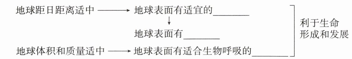 (2)地球与太阳的距离适中,使地球表面保持着适宜的温度(平均约15℃),从而使地球表面有液态水的存在,有利于生命的形成和演化。