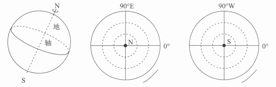 在三幅图上适当位置分别用箭头标出地球的自转方向。