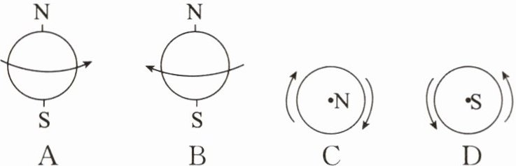 2. 下面是表示地球自转方向的四幅图,其中正确的是(