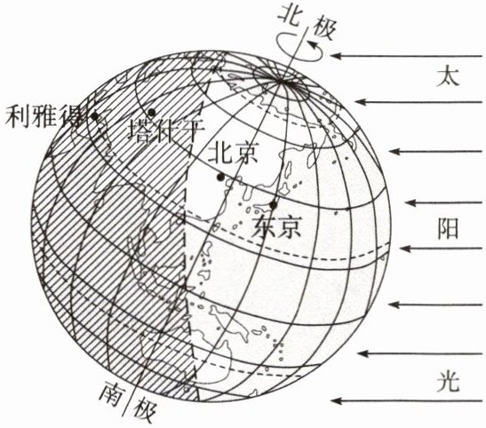 4. 读地球光照示意图,图中四个城市,时间最早的是(