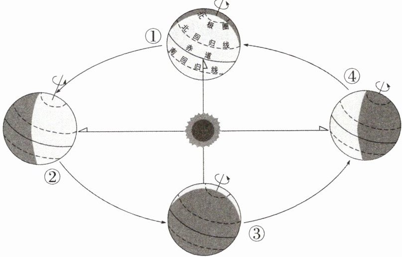 1.自左向右、自上而下:① 3月21日 ② 北回归线 ③ 9月23日 ④ 南回归线