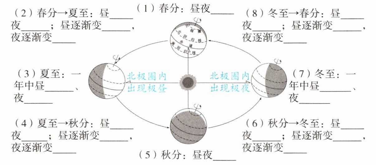2. 观察昼夜长短的变化(以北半球为例)