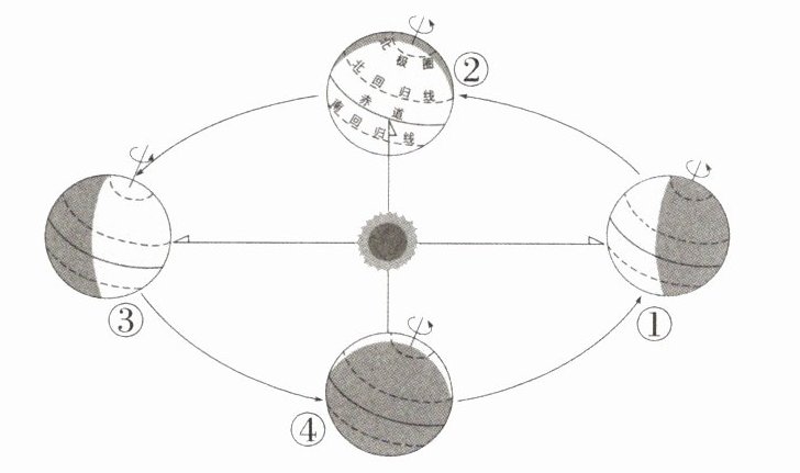 2. 北半球春分日这一天,地球位于图示公转轨道上的(