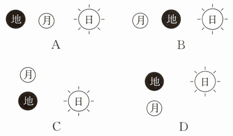 1. 当月全食发生时,太阳、地球和月球(非真实大小比例)的位置关系是(
