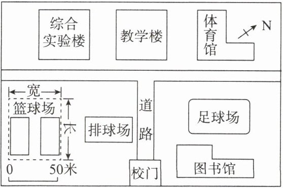 5. 学校篮球场的宽度约为(