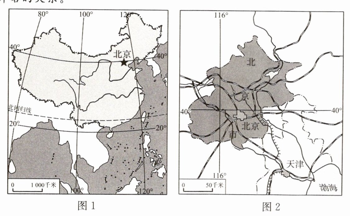 。2. 将图 1 和图 2 的比例尺转换成数字式比较大小,则图 1 的比例尺