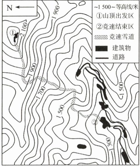 下图为北京延庆西北部小海坨山国家高山滑雪中心等高线地形图。据此回答 3~4 题。