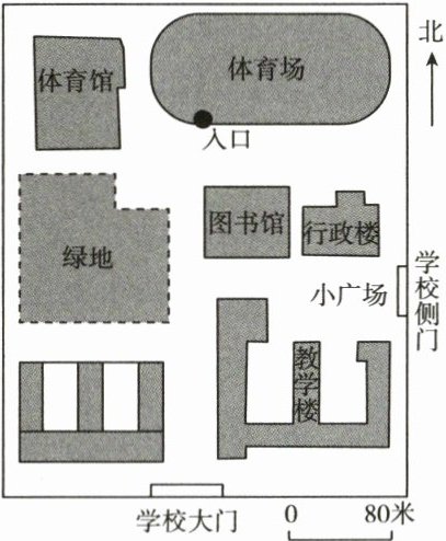 地图是我们学习地理和日常生活的重要工具。下图为某学校平面图。读图,回答 1~2 题。