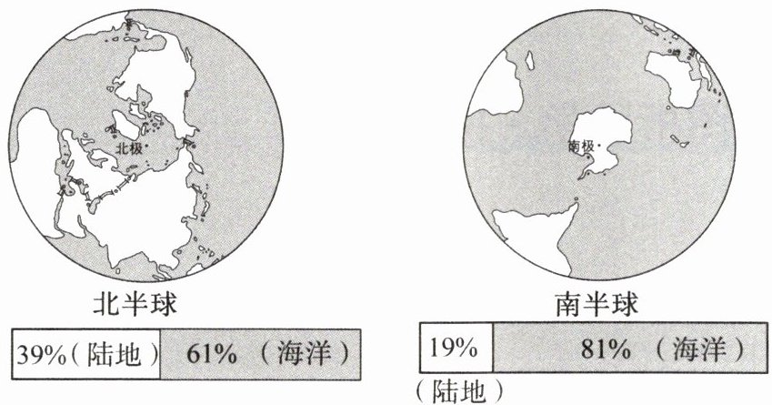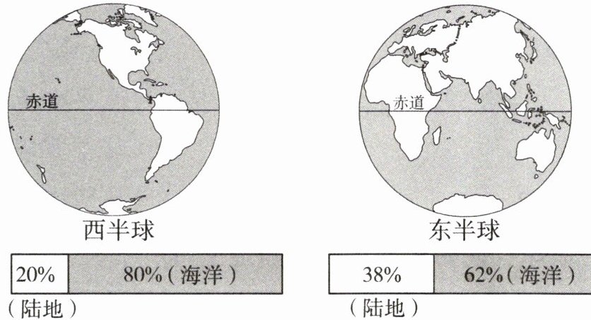 (3)得出结论:无论是东半球,还是西半球,都是海洋面积