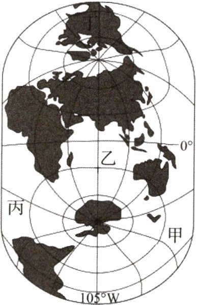6. 读竖版世界海陆分布图,有关图中信息的描述,正确的是(