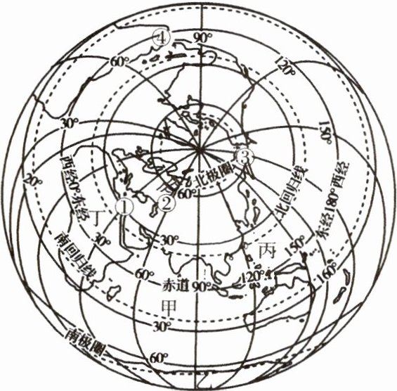1. 图中甲、乙、丙、丁代表的大洲和大洋,正确的是(