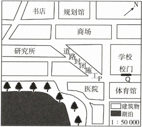 D. 经测量图中 P 与 Q 之间的距离为 1 厘米,则其实地距离为 0.5 千米