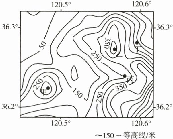 读山东省青岛市某区域等高线地形图,回答 11~12 题。