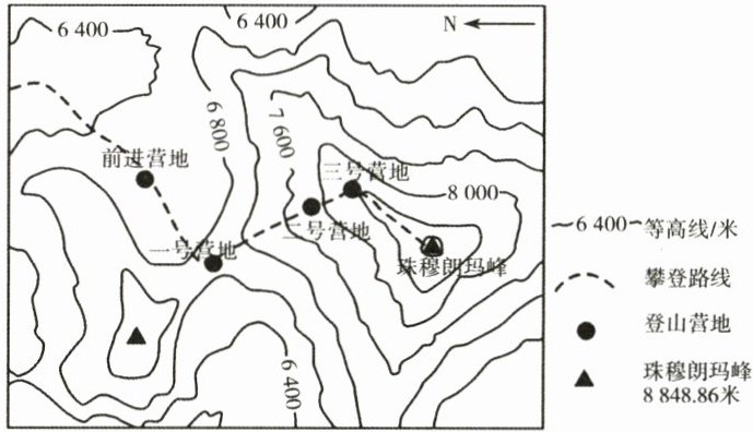 珠穆朗玛峰位于青藏高原南缘的喜马拉雅山脉中。登山队队员多次登峰,对珠峰“身高”进行了测量。下图为珠峰测量攀登部分路线示意图,据此回答 9~10 题。