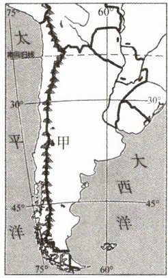 2. 在某大洲 $37^{\circ}S$ 附近可以看到的雄伟的甲山脉是(