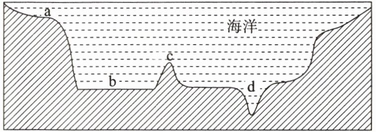 7. 读海底地形剖面示意图,从海岸到大洋中部,依次出现的地形类型为(