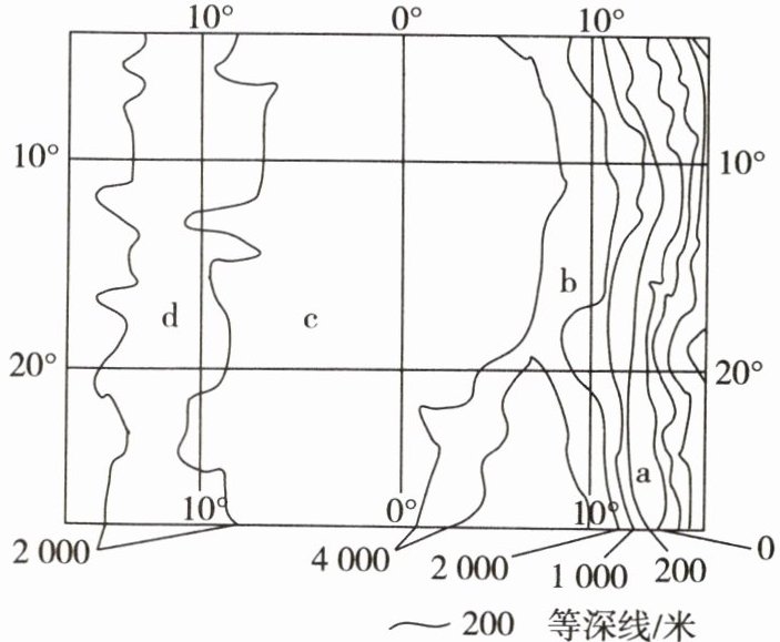 11. 读某海域等深线地形图,图中字母代表的地形,正确的是(
