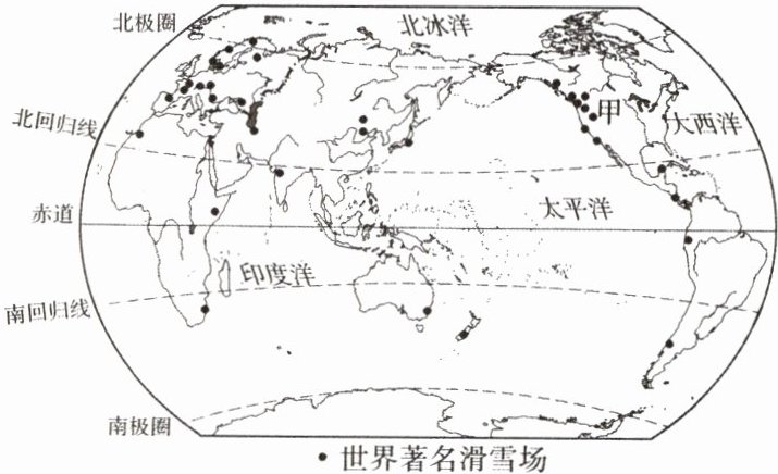 下图示意世界著名滑雪场的分布。读图,回答 9~10 题。