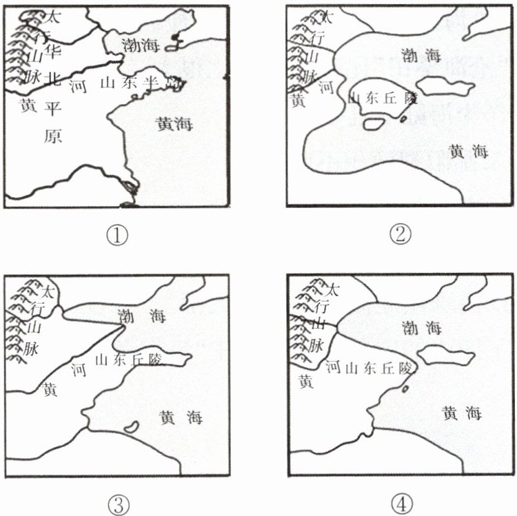 9. 能正确反映华北平原形成过程的排序是(