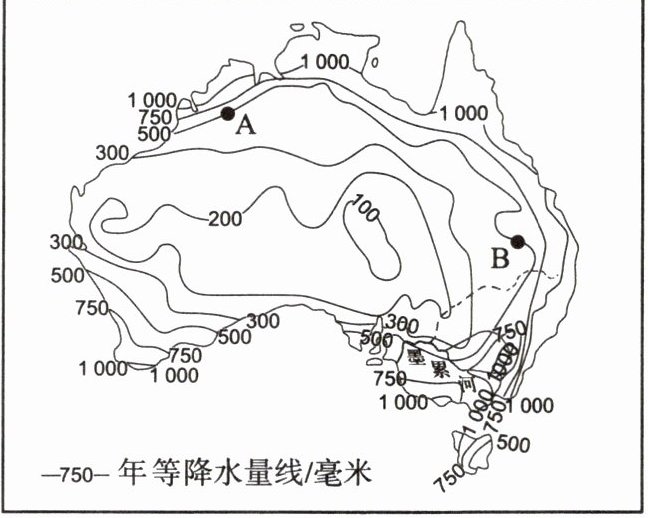 下图示意澳大利亚年降水量分布。读图,了解等降水量线的特点。
