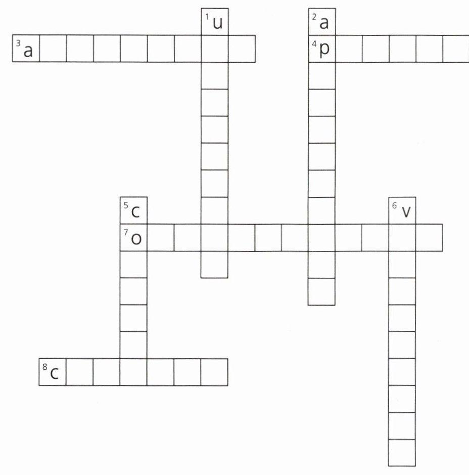 根据英文释义提示,完成纵横字谜游戏。已给出每个单词的首字母。