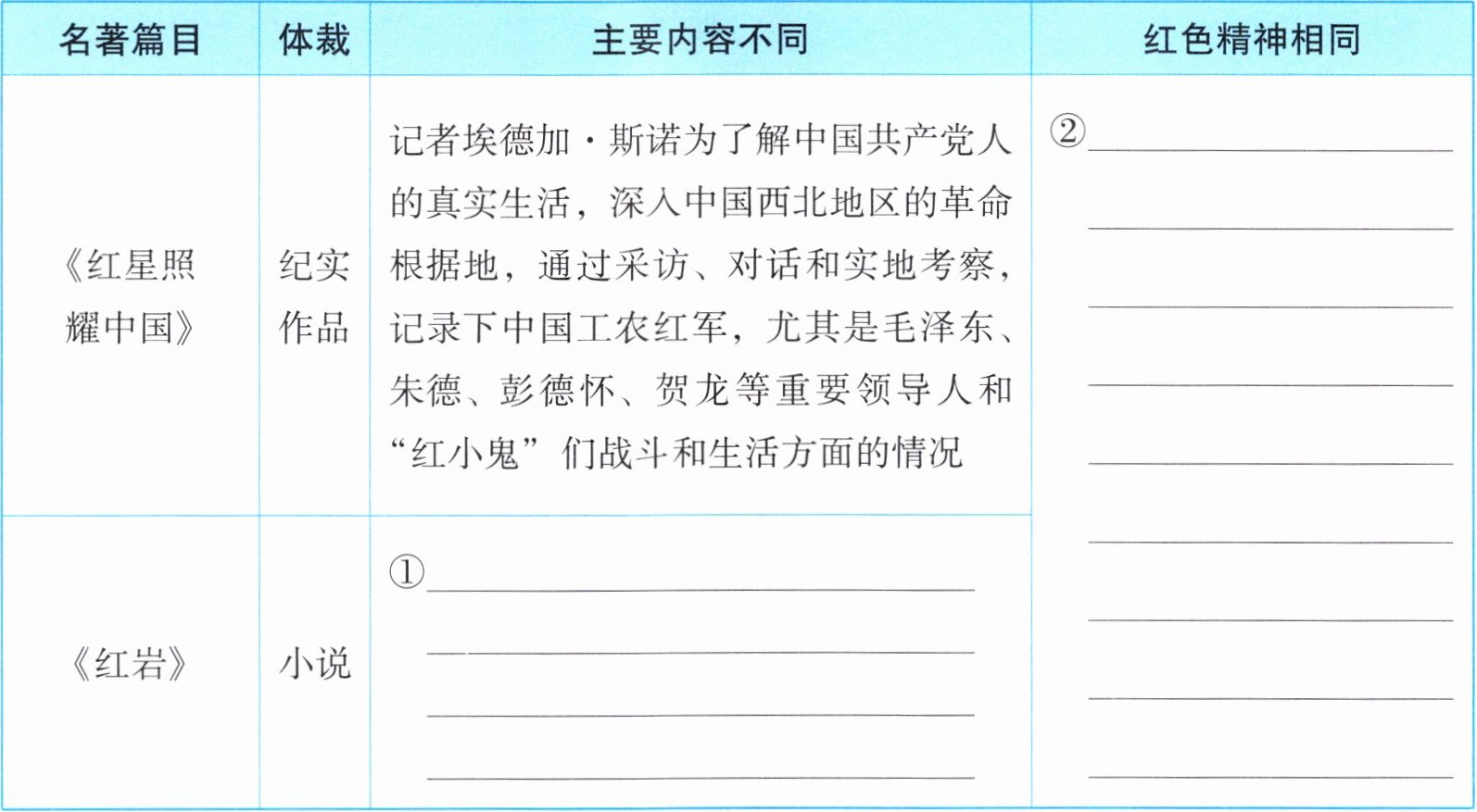 8. 对比阅读红色经典《红星照耀中国》和《红岩》,完成表格。