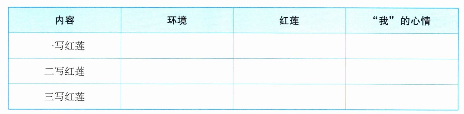 4. 结合《荷叶·母亲》一文,完成下面的表格。