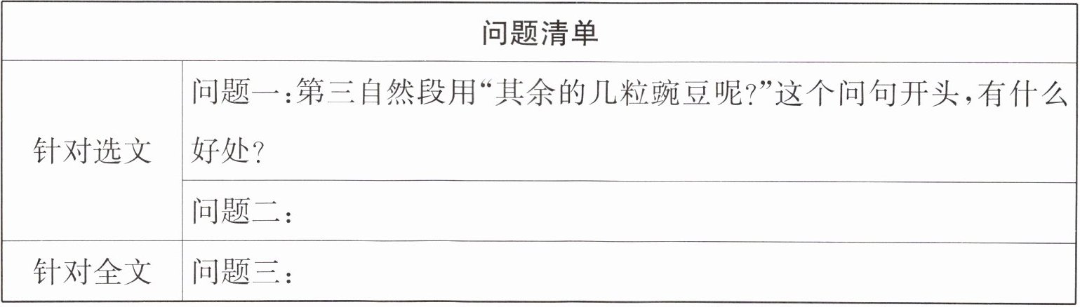 |针对选文|问题一:第三自然段用“其余的几粒豌豆呢?”这个问句开头,有什么好处?|
