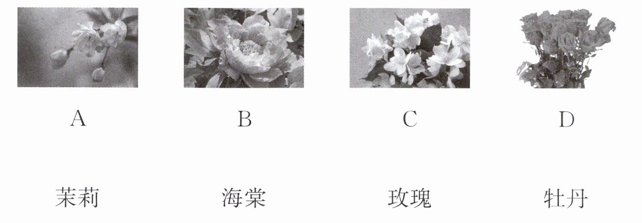 A—海棠 B—牡丹 C—茉莉 D—玫瑰