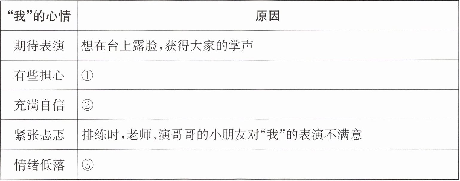 |紧张忐忑|排练时,老师、演哥哥的小朋友对“我”的表演不满意|
