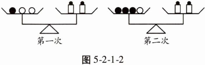 9. 实验室中有黑白两种颜色的小球若干个,其中同色小球的质量均相等,天平的砝码相同,在如图5-2-1-2中的两次称量中天平恰好平衡,如果第三次天平的左盘中有4个黑球和3个白球,那么天平的右盘需要放多少个这样的砝码才能平衡?