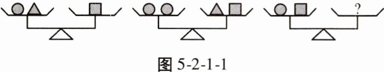 4. 如图5-2-1-1是三架平衡的天平,则第三架天平中的“?”处应放