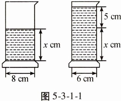 1. 在做科学实验时,老师将第一个量筒中的水全部倒入第二个空量筒中,如图5-3-1-1,根据图中给出的信息,可得正确的方程是(