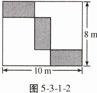 6. 如图5-3-1-2,在长为10m、宽为8m的长方形空地中,沿平行于长方形各边的方向分割出三个完全相同的小长方形花圃。求小长方形花圃的长和宽。