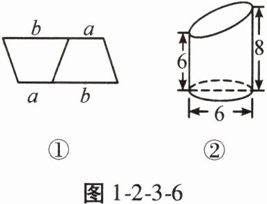 6. 图1-2-3-6②是圆柱被一个平面斜切后得到的几何体,类比梯形面积公式的推导方法(如图1-2-3-6①)计算图1-2-3-6②中几何体的体积为