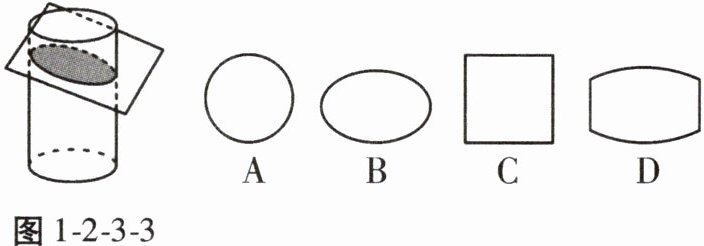 1. 如图1-2-3-3,用一个平面按图中方式去截一个圆柱,则截面的形状应为(